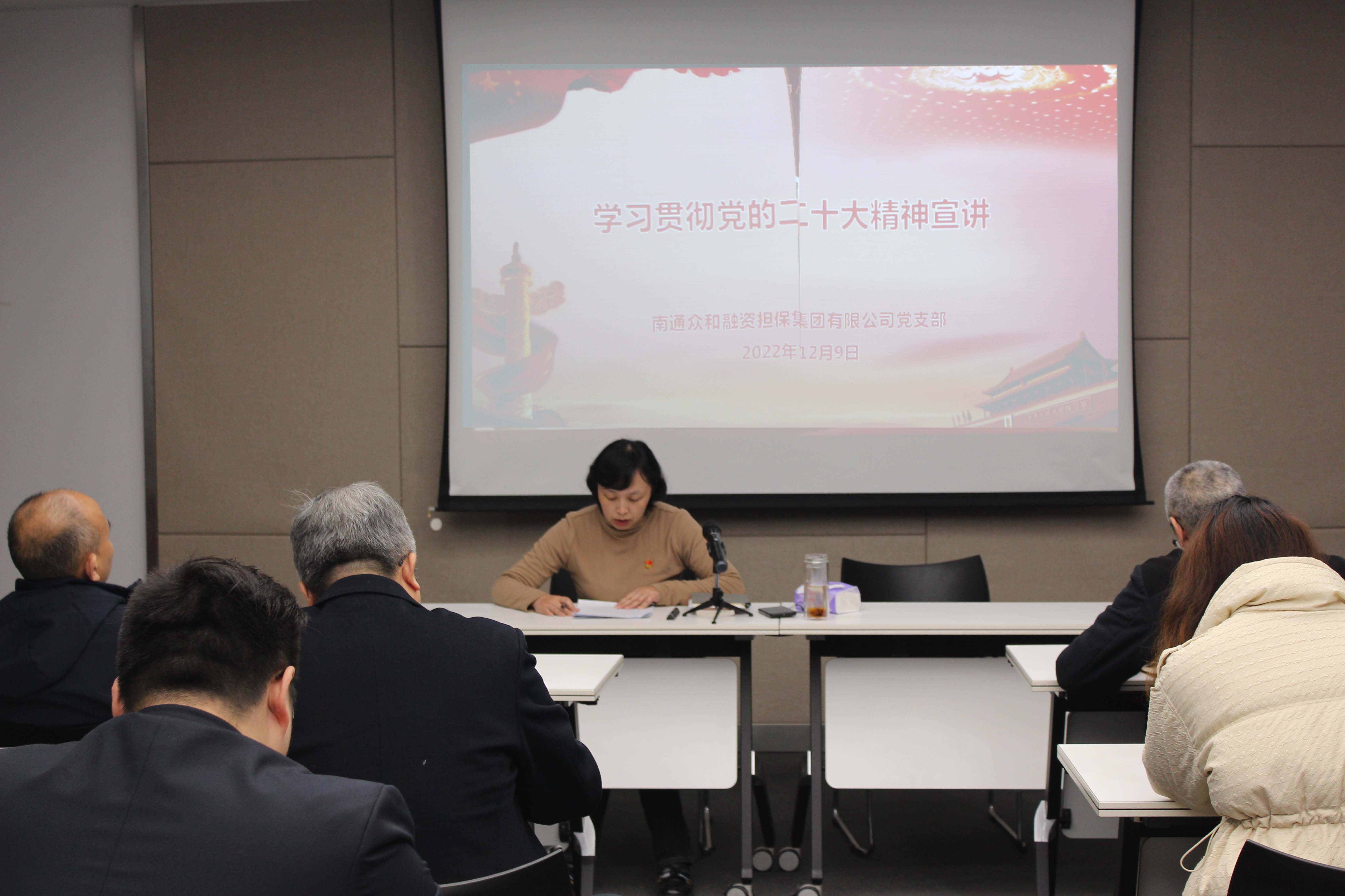 近日,眾和擔保黨支部組織開展學習貫徹黨的二十大精神宣講活動,黨支部書記李瑾作宣講報告,公司中層以上領(lǐng)導及全體黨員參加活動。