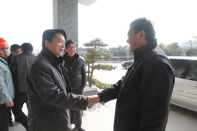 新春佳節(jié)后的首個工作日,集團董事長杜永朝,總經(jīng)理陸強新等率隊,深入江山股份、精華制藥、紡織染公司、醋酸化工、江天化學(xué)、揚子碳素等多家骨干企業(yè)慰問。 慰問中,集團董事長杜永朝,總經(jīng)理陸強新對大家在2012年的辛勤工作表示真誠感謝,對春節(jié)長假期間仍然堅守崗位的同志們表示誠摯慰問!杜永朝董事長強調(diào),“天道酬勤、人勤春早”,集團上下要從新春的第一天開始就始終堅持勤勤懇懇地干、兢兢業(yè)業(yè)地干、腳踏實地地干,依靠過硬的作風(fēng)贏得發(fā)展先機,共創(chuàng)產(chǎn)控集團更加美好的2013年!