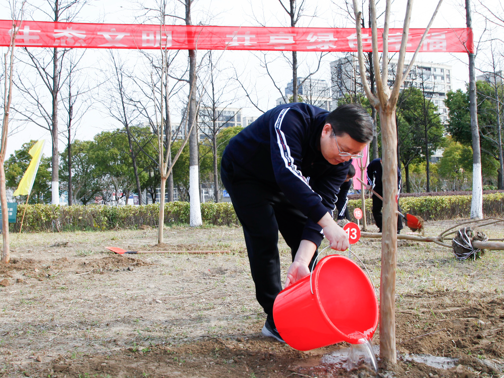 春風(fēng)和煦,萬(wàn)物萌生,在位于通呂運(yùn)河綠廊星島水岸段的植樹現(xiàn)場(chǎng),張劍橋董事長(zhǎng)、顧建國(guó)總經(jīng)理與集團(tuán)其他領(lǐng)導(dǎo)帶領(lǐng)大家一起熱火朝天地?fù)]鍬鏟土、扶苗填坑、培實(shí)新土、提水灌溉。大家熱情高漲、干勁十足、二三人一組、分工協(xié)作,共同種下50余棵紫薇樹苗,牢固樹立和踐行了“綠水青山就是金山銀山”的理念,為推進(jìn)新時(shí)代生態(tài)文明建設(shè)、建設(shè)美麗南通貢獻(xiàn)產(chǎn)控力量。