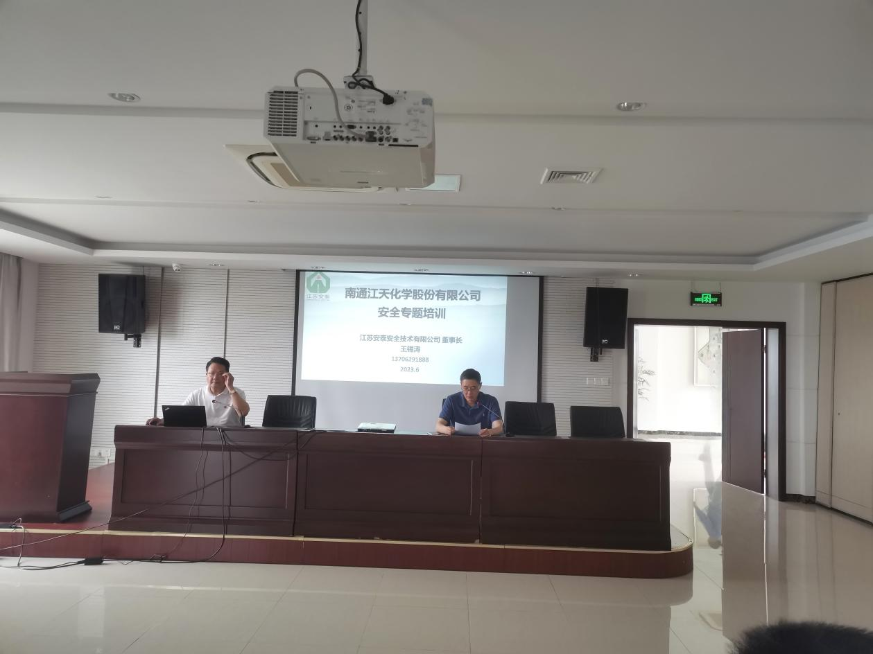 為全面貫徹習(xí)近平總書記關(guān)于安全生產(chǎn)的重要論述,進(jìn)一步提高全員安全意識(shí),提升崗位人員的HSE實(shí)操技能,加強(qiáng)承包商作業(yè)管理,6月13日下午,南通江天化學(xué)股份有限公司結(jié)合“人人講安全、個(gè)個(gè)會(huì)應(yīng)急”的安全生產(chǎn)月活動(dòng)主題,召開了半年度主要負(fù)責(zé)人HSE培訓(xùn)大會(huì)。本次大會(huì)特邀江蘇安泰安全技術(shù)有限公司董事長(zhǎng)王錫濤同志為公司全體員工、承包商代表做安全生產(chǎn)專題培訓(xùn)講座。