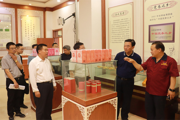 6月25日下午,甘肅省人大常委會黨組副書記、副主任馬廷禮,甘肅省人大農委副主任委員、常委會農工委主任王春江等調研組領導一行,在隴西縣縣委書記祁雪峰等陪同下蒞臨隴西保和堂調研指導工作。公司總經理馬中森全程接待。馬廷禮副書記一行先后參觀了公司規(guī)?;療o硫生產加工車間、展廳等。